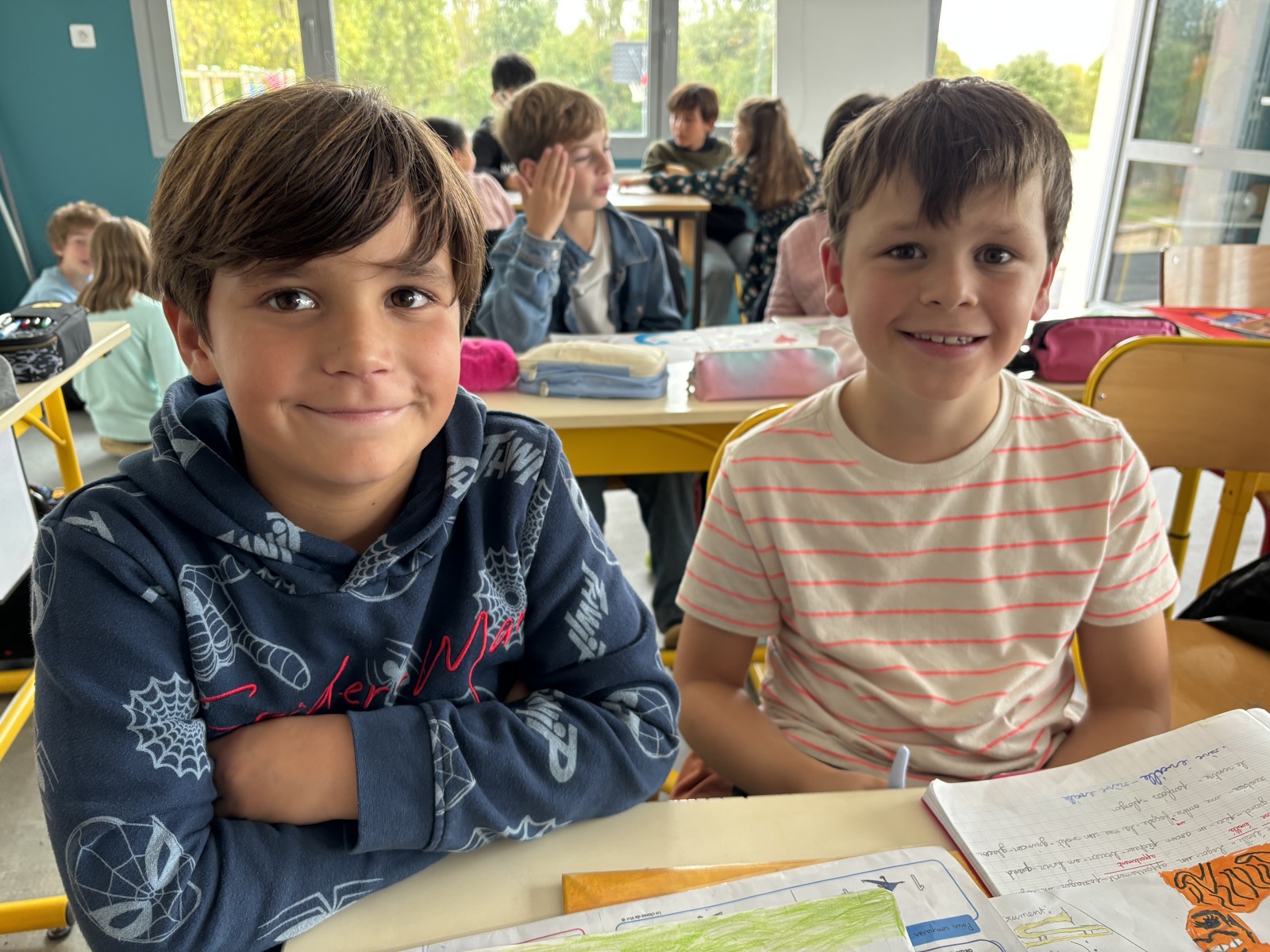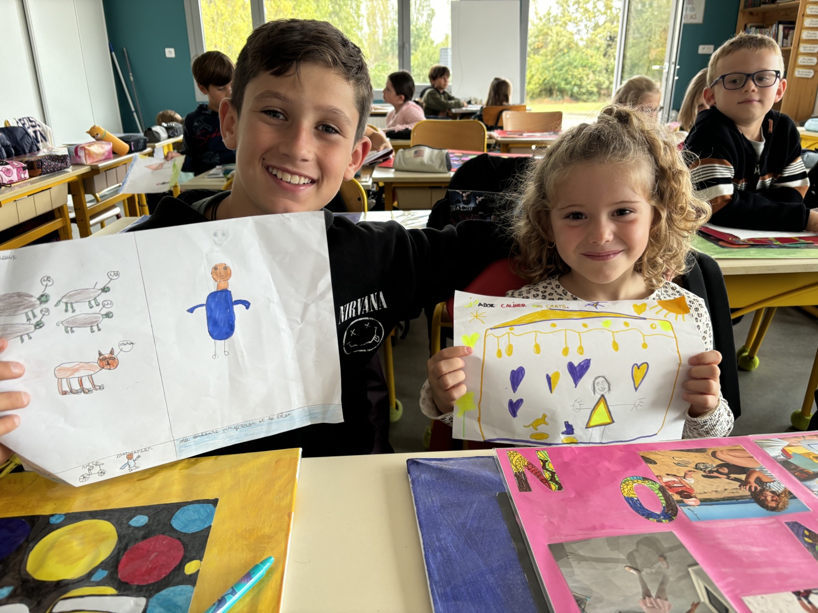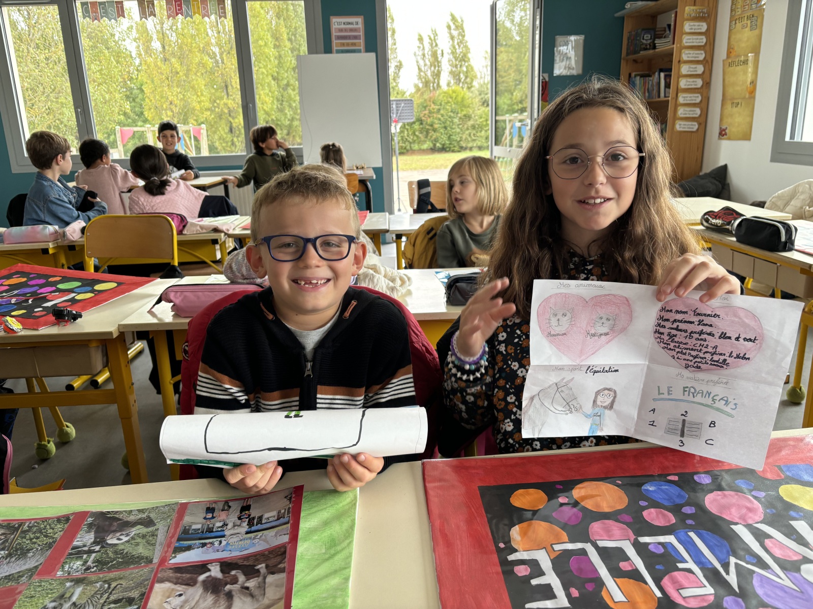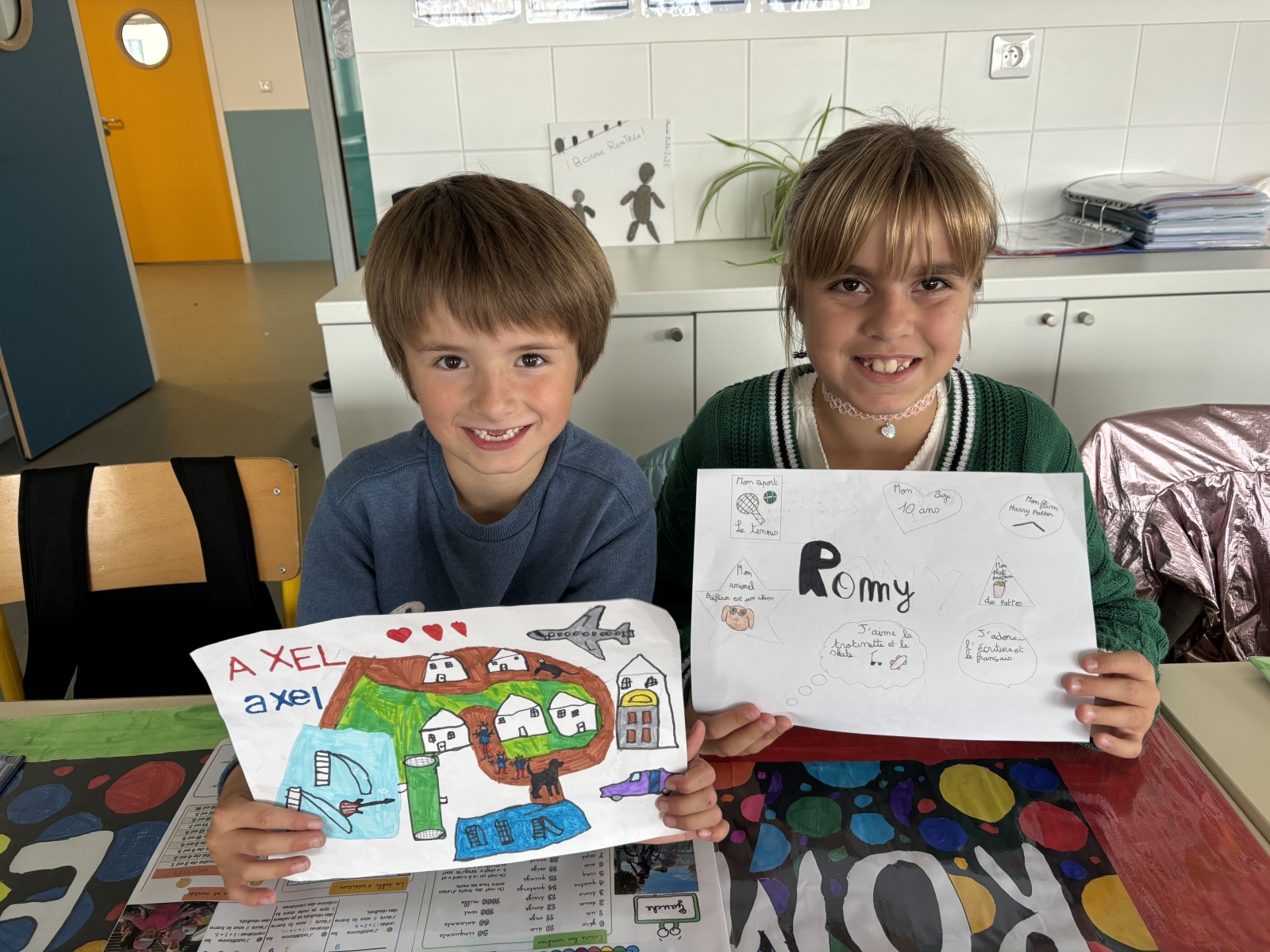 La première étape consistait donc à se connaitre. Les élèves avaient préparé sous forme de dessins, photos ou textes pour les plus grands, une présentation.
