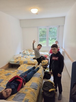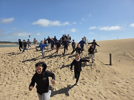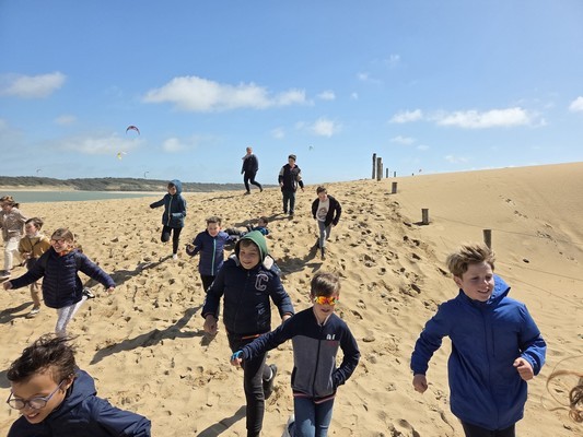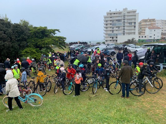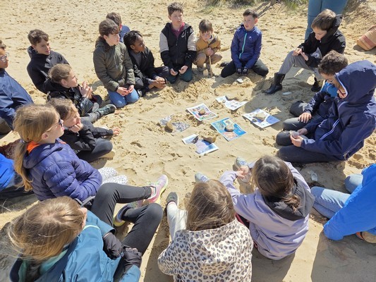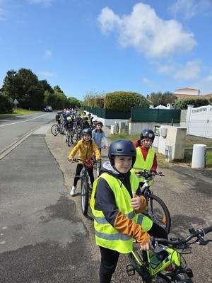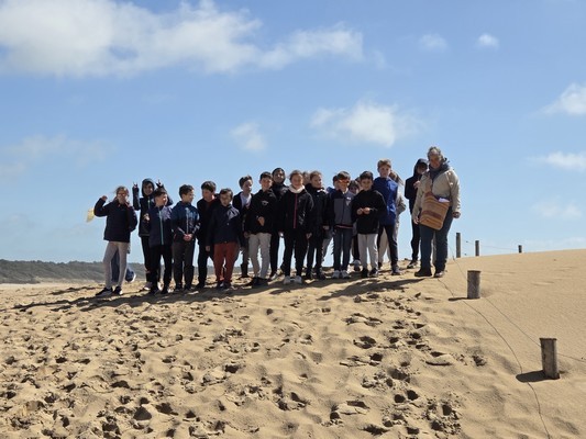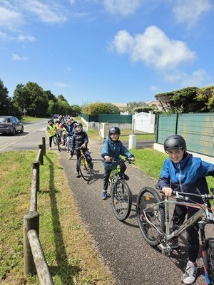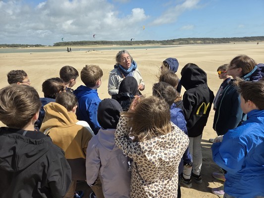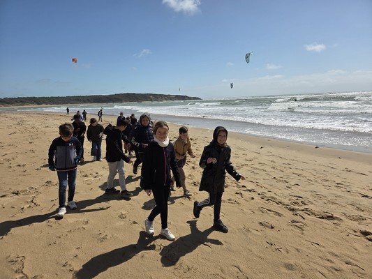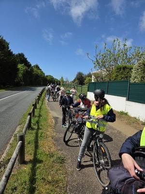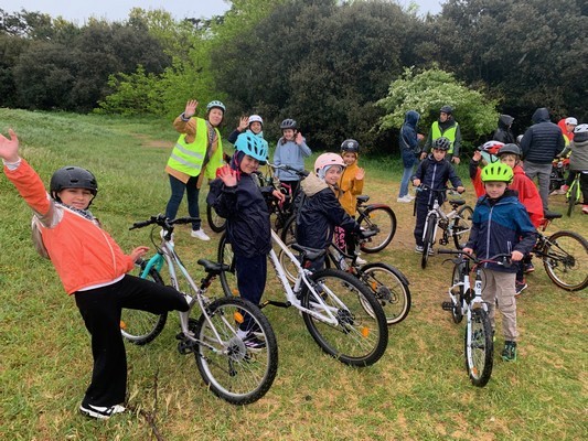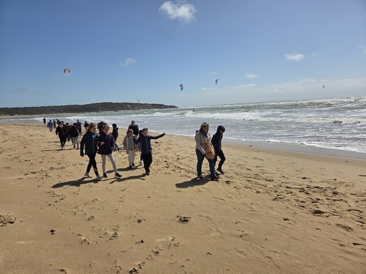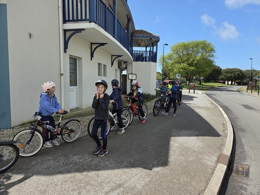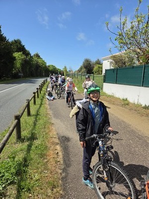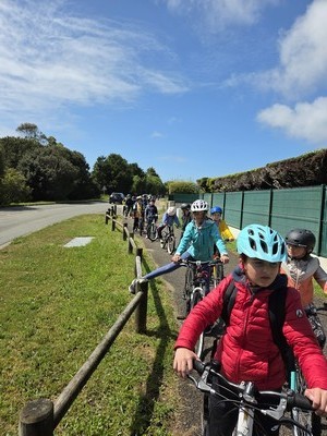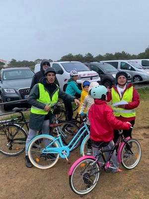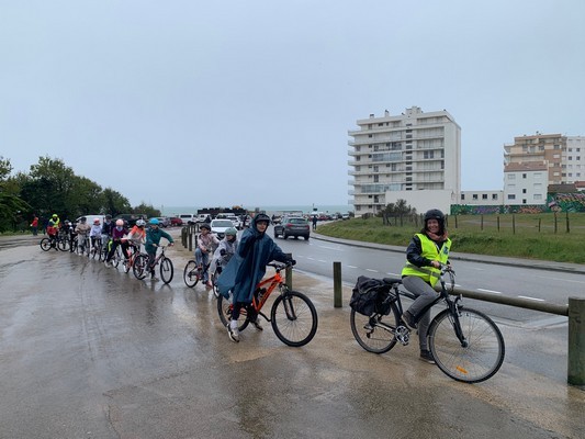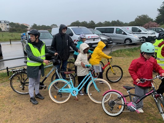 Après un départ mouvementé, l’aller à vélo a été bien arrosé, mais avec le vent dans le dos. Il nous a donc poussé jusqu’au centre où nous avons pu nous installer et nous sécher. Le soleil, de retour l’après-midi nous a offert une promenade au Veillon entre mer et forêt, acompagnés d’animateurs nature. A part quelques déraillages, les trajets se sont bien passés.