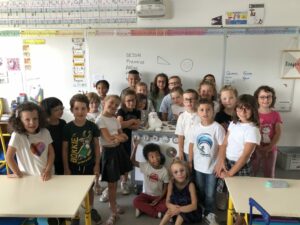 La classe de CE1 a fait une belle rentrée et a eu la surprise d’accueillir un 26ème élève … Elle vous présente MAESTRO, vieux sage curieux de tout, un peu maladroit (il se prend régulièrement les pieds dans sa barbe!) et surtout inventeur génial d’une machine à remonter le temps ! Avec lui et son grand savoir, les CE1 vont découvrir comment les Hommes vivaient il y a bien longtemps … C’est parti pour “Il était une fois les aventures de MAESTRO avec la classe des CE1”