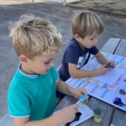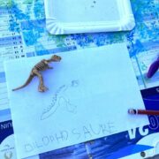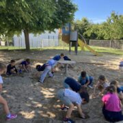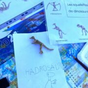 Les enfants des classes de grande section s’initient au métier de paléontologue, après avoir étudié les dinosaures. Le chantier ouvert, ils ont pu fouiler et découvrir de petits squelettes de dinosaures. Après les avoir minutieusement nettoyés, ils les ont mesurés, dessinés pour ensuite retrouver leurs noms.