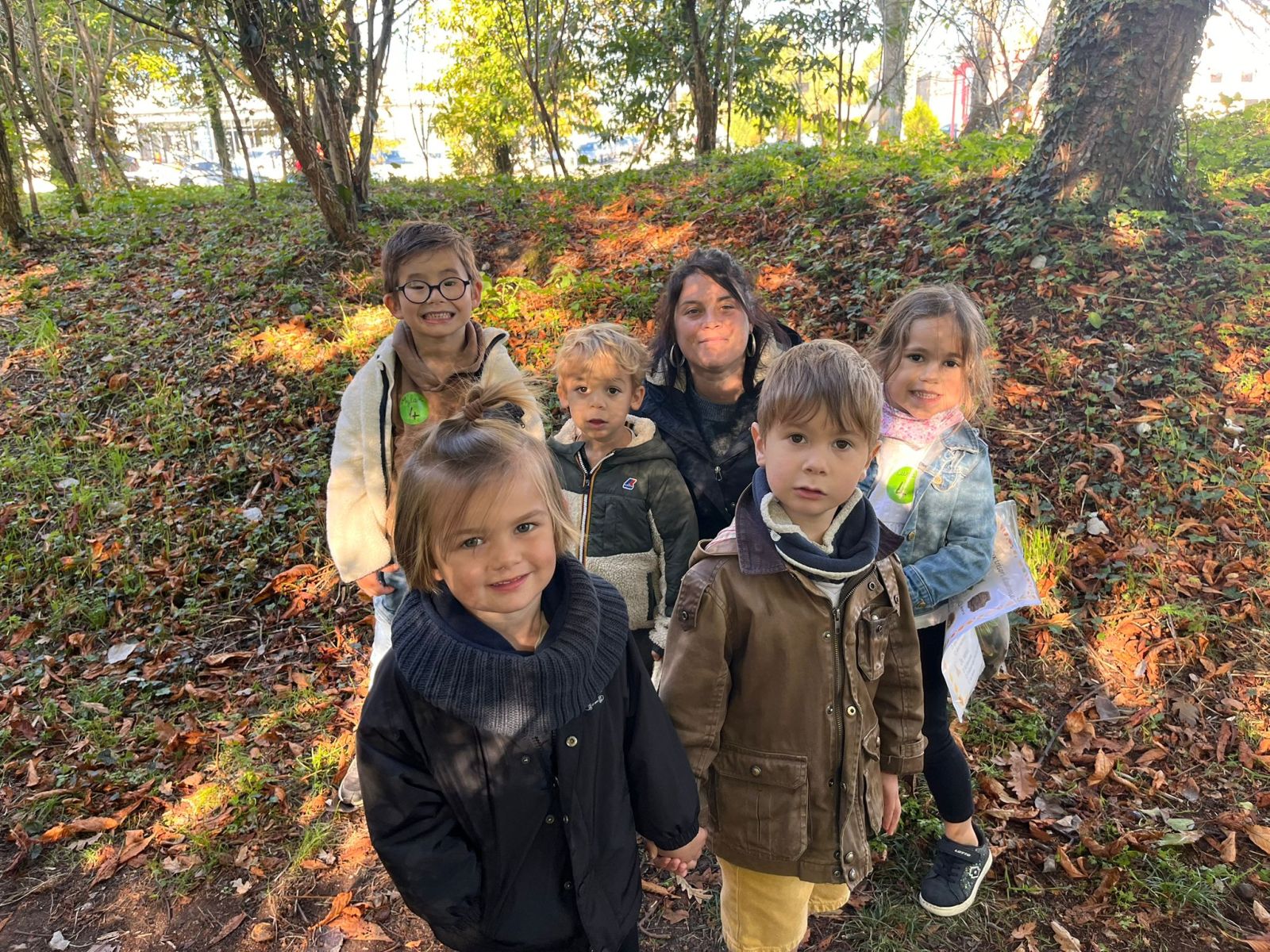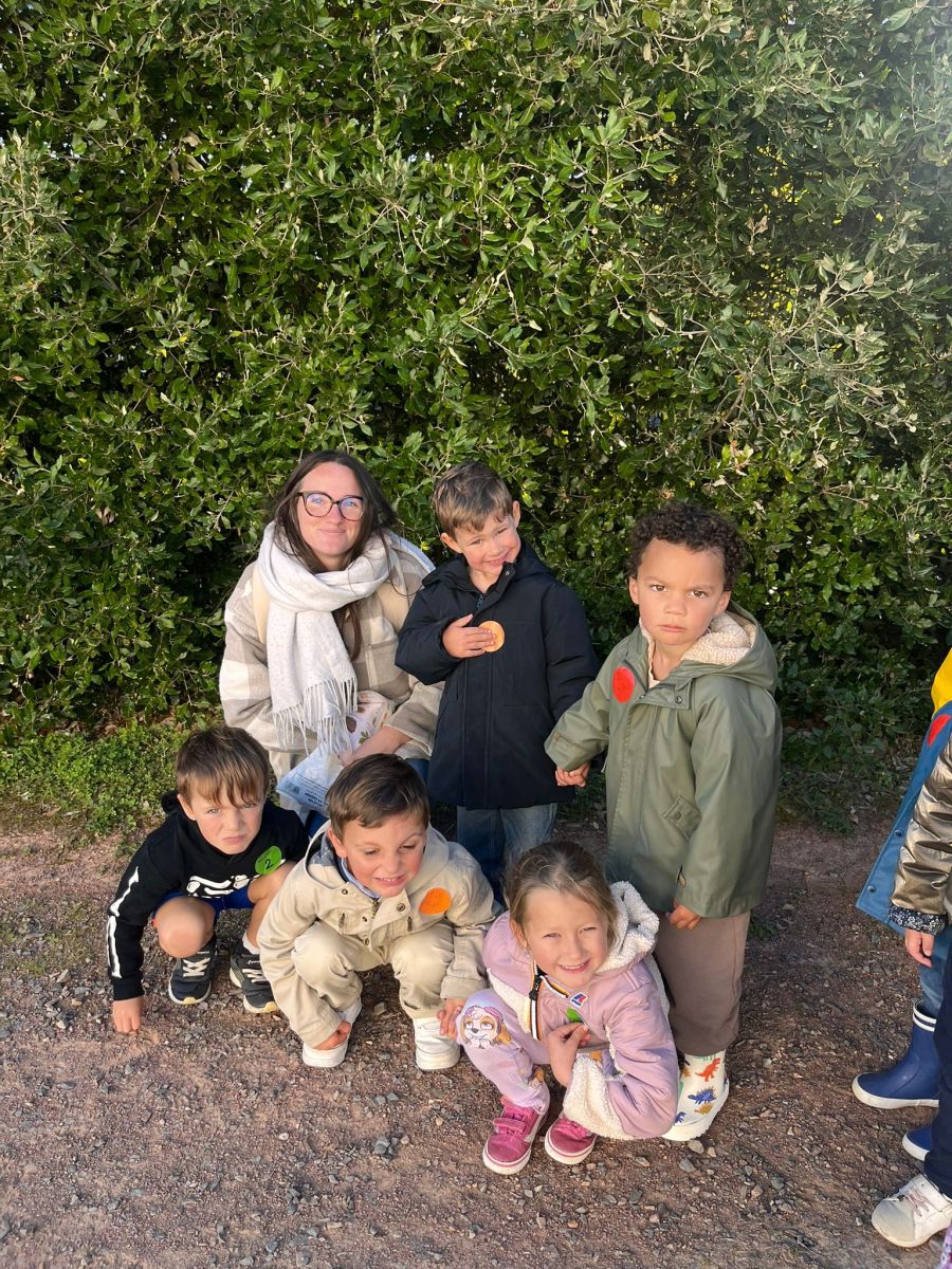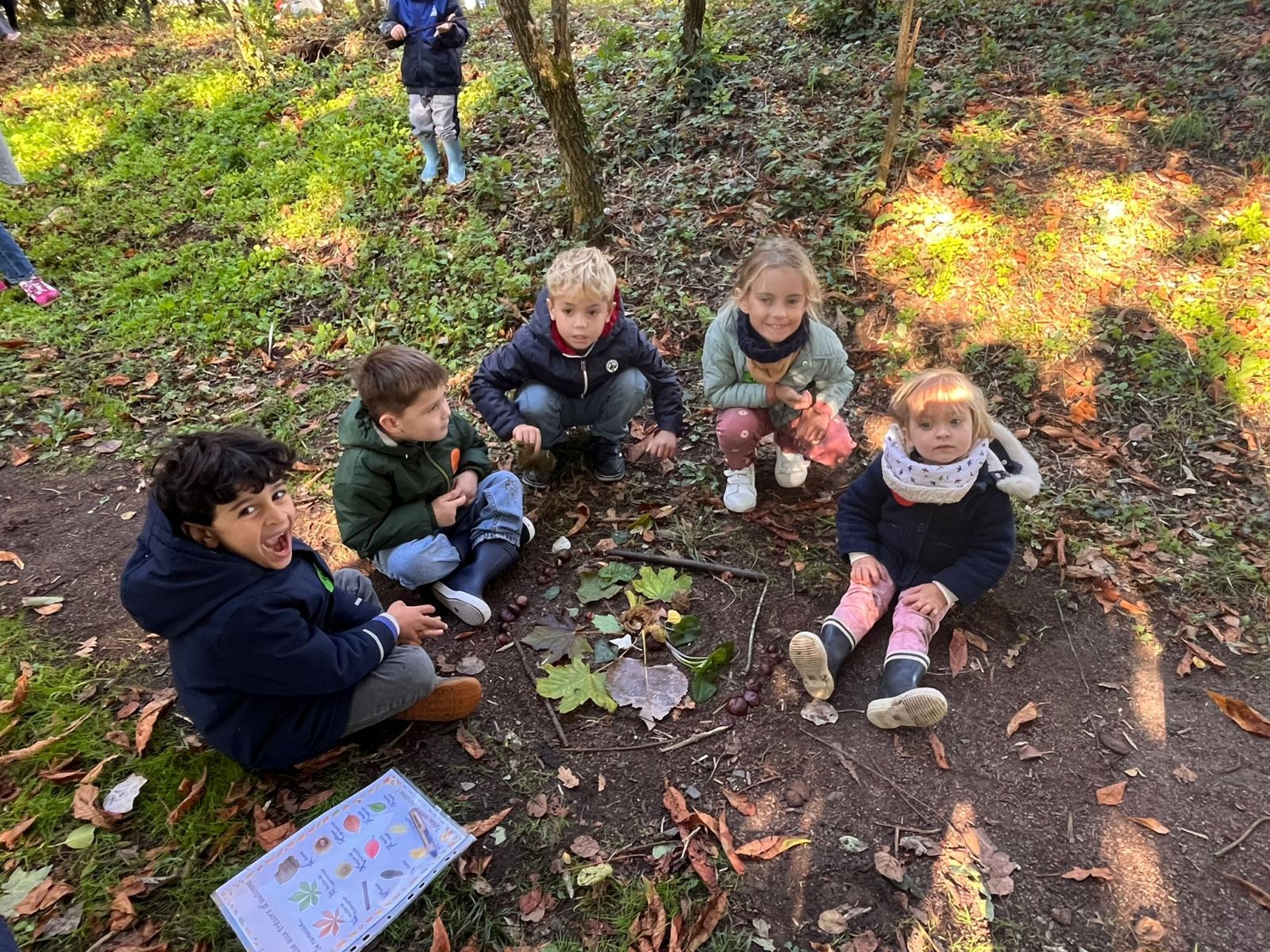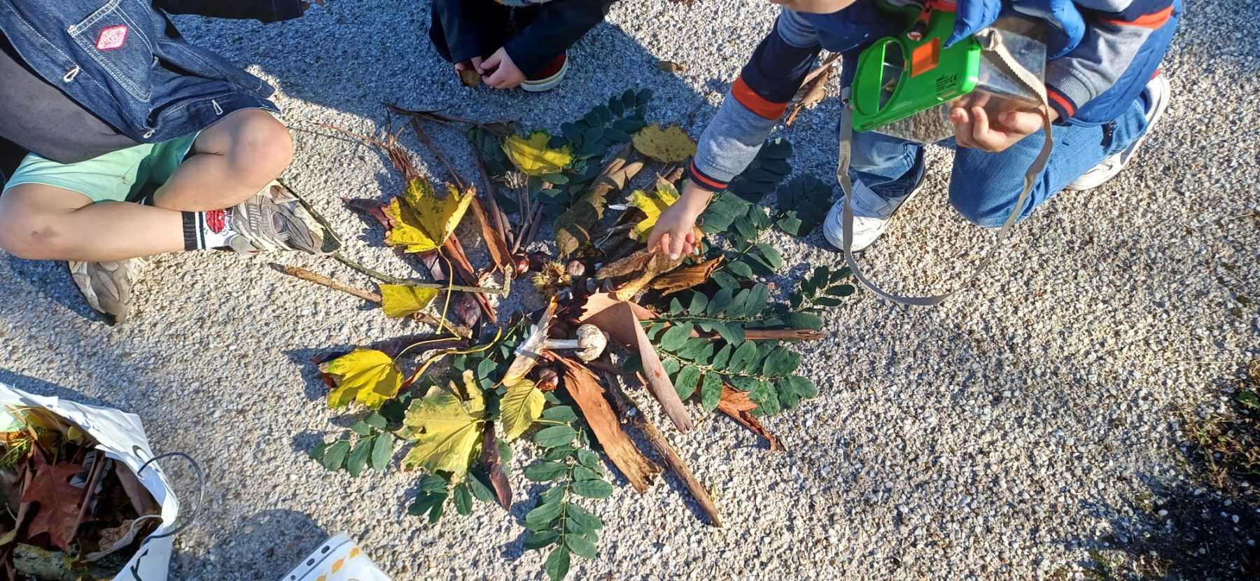 Après nos découvertes, nous avons profité de ce moment pour faire du Land Art :nous avons créé de jolis mandalas avec les trésors de la nature — des feuilles, des marrons, des bâtons, des cailloux, …