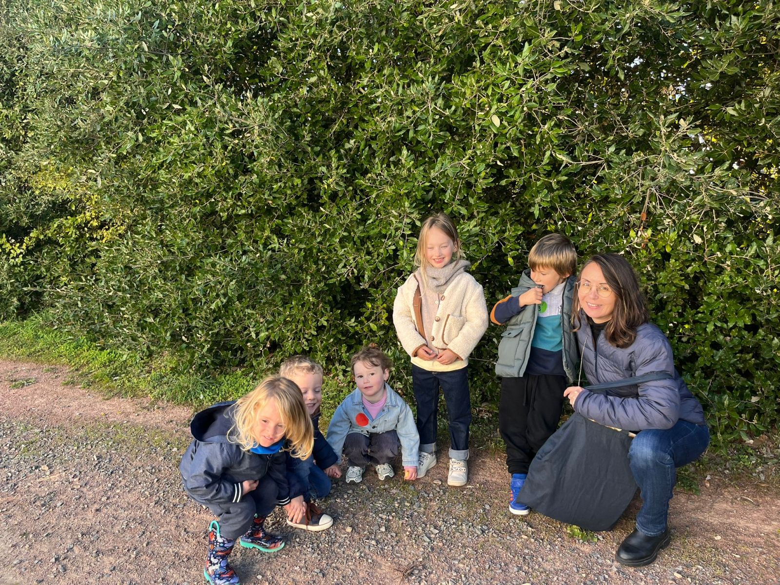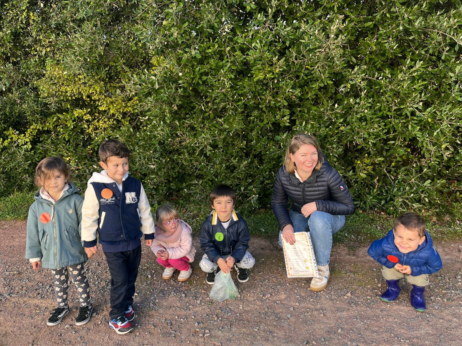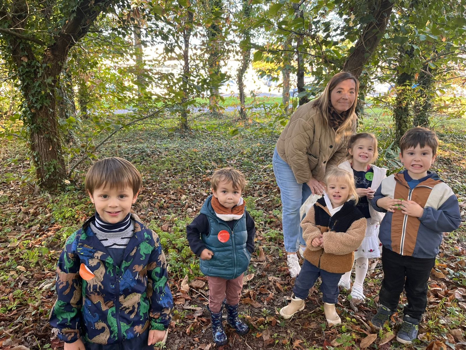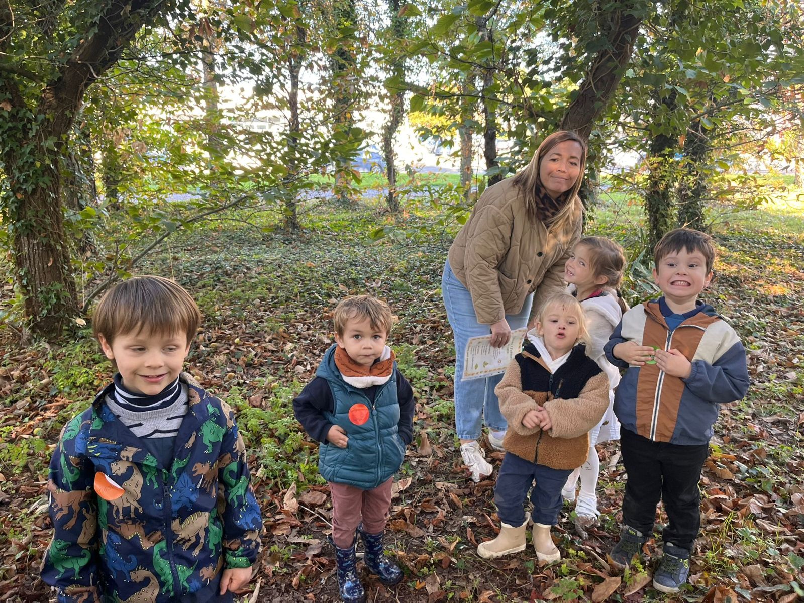 Après nos découvertes, nous avons profité de ce moment pour faire du Land Art :nous avons créé de jolis mandalas avec les trésors de la nature — des feuilles, des marrons, des bâtons, des cailloux, …
