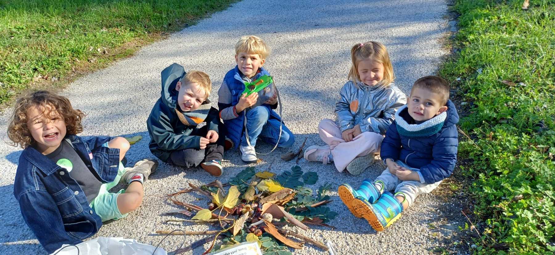 Cette semaine, les élèves de PS, MS et GS sont parti à la découverte de la nature en automne.