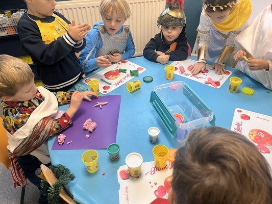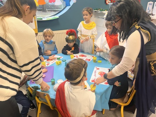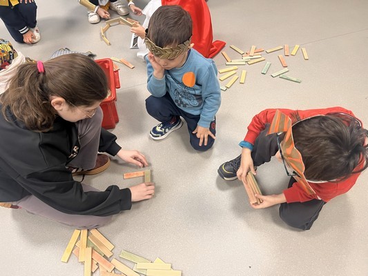 Toujours dans le cadre de notre projet annuel de “Voyage dans le temps”, nous avons clôturé cette période par un temps fort sur le thème de l’Antiquité. Des ateliers de sport, d’art, de construction ont été proposés aux enfants déguisés, qui se sont retrouvés entre parrains et filleuls pour vivre ce temps fort.