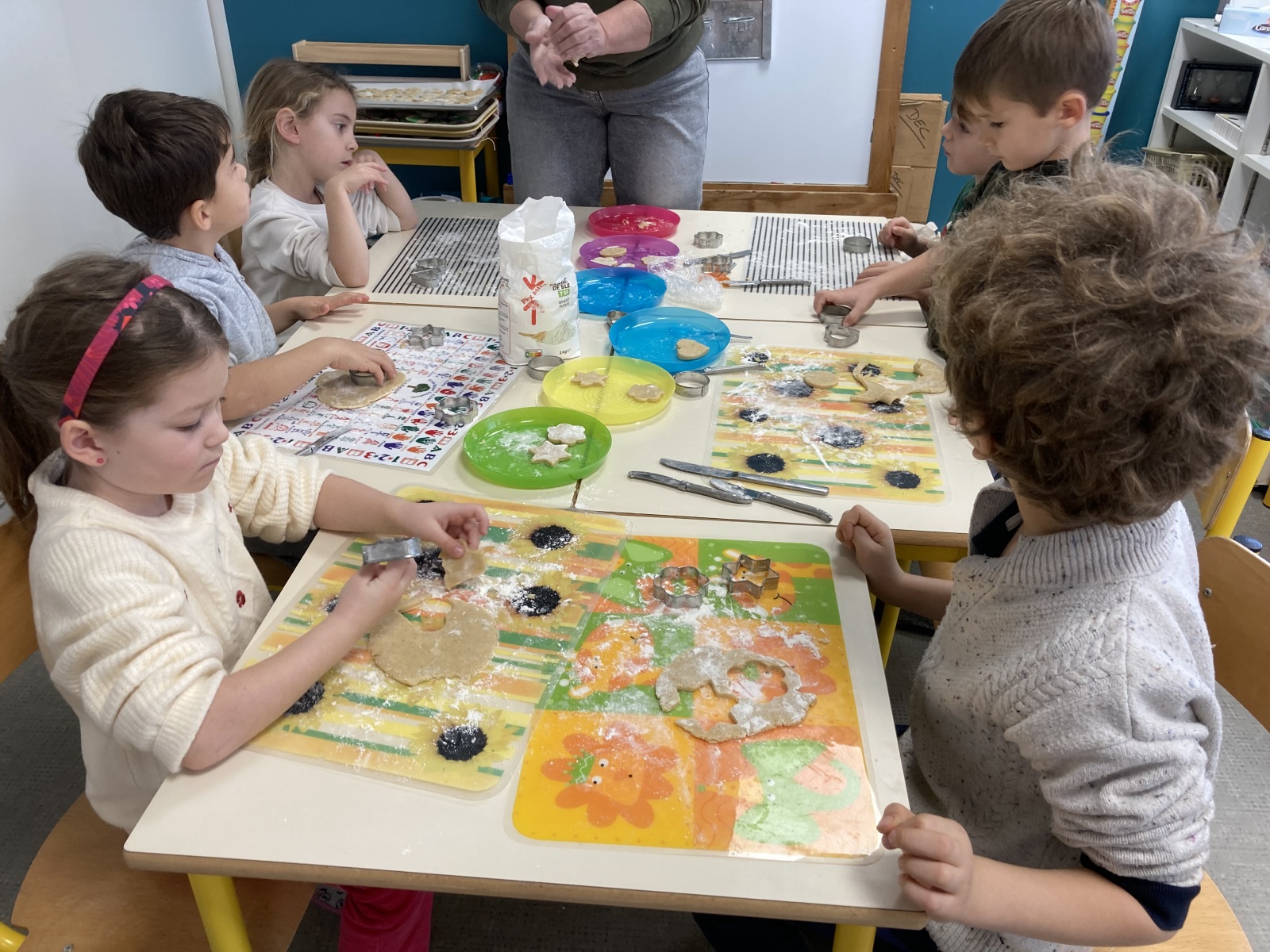 Nous avons préparé le marché de Noël : les différents bricolages avec nos parrains et les sablés. Nous avons aussi travaillé avec le vocabulaire de Noël, réalisé des ateliers de mathématiques, décoré la classe, lu des histoires avec nos parrains.