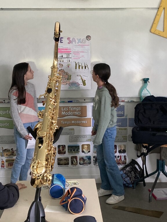 Les élèves ont partagé leurs talents : dessins pour Léa, Louise, Léopold, Nathan, Lorenzo, puis chacun a pu comprendre les techniques et expérimenter lors d’ateliers. Des exposés présentés par Léa pour le saxophone, Eleanor et Brooke pour le yukulélé et la guitare, Gautier pour le piano ont mis en avant les instruments de musique. Par ailleurs, avec la stagiaire Sophie, l’écoute du conte musical Pierre et le loup leur permet de découvrir les familles d’instruments. N’hésitez pas à cliquer pour les écouter !