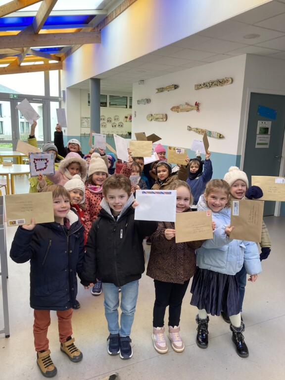 Nous avons réalisé des cartes de voeux et nous sommes allés les déposer dans une boîte aux lettres près de